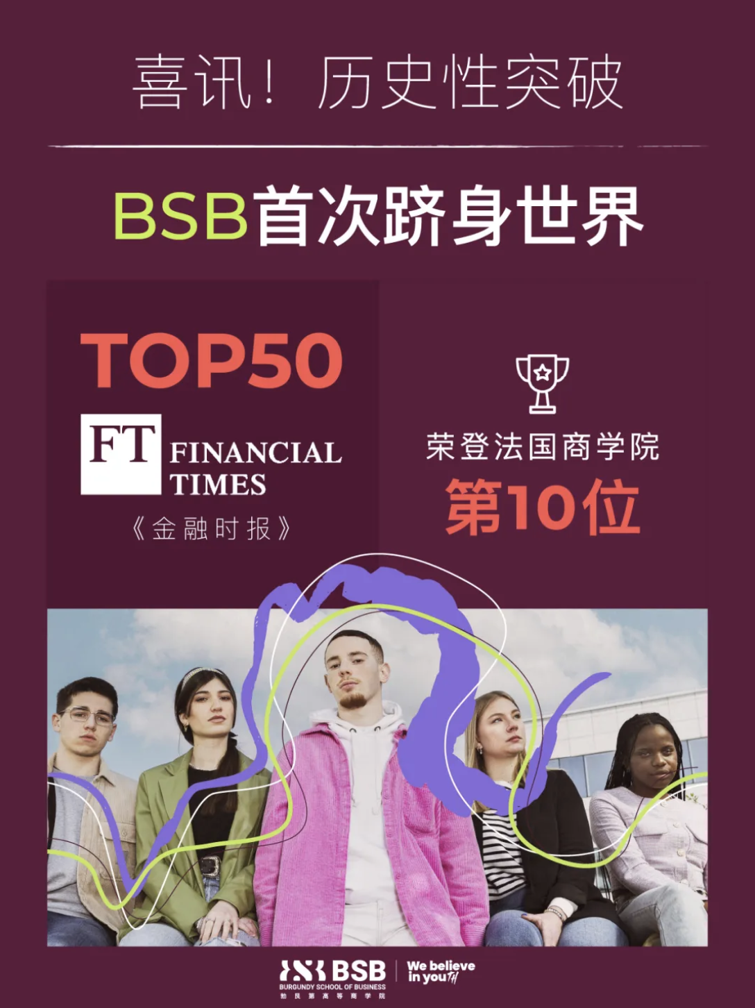 勃艮第高等商学院(Burgundy School of Business,BSB)在9月最新发布的2025年《金融时报》(Financial Times)全球管理学硕士(Masters in Management)排名中,BSB首次进入全球前50,位列第49位,相比去年上升3位。