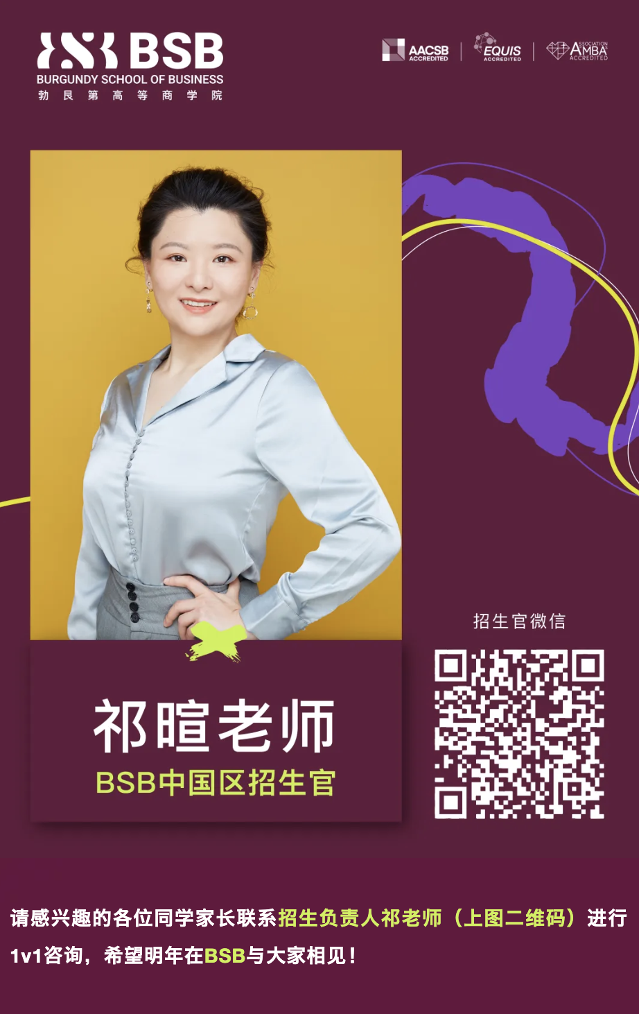 今年BSB 勃艮第高等商学院将全程参与,为大家现场解答关于课程申请、实习机会、奖学金政策及职业规划等实用问题。请务必扫码报名,提前锁定场次,与高校代表零距离沟通——让你的法国留学之路,从这场秋季相遇开始。